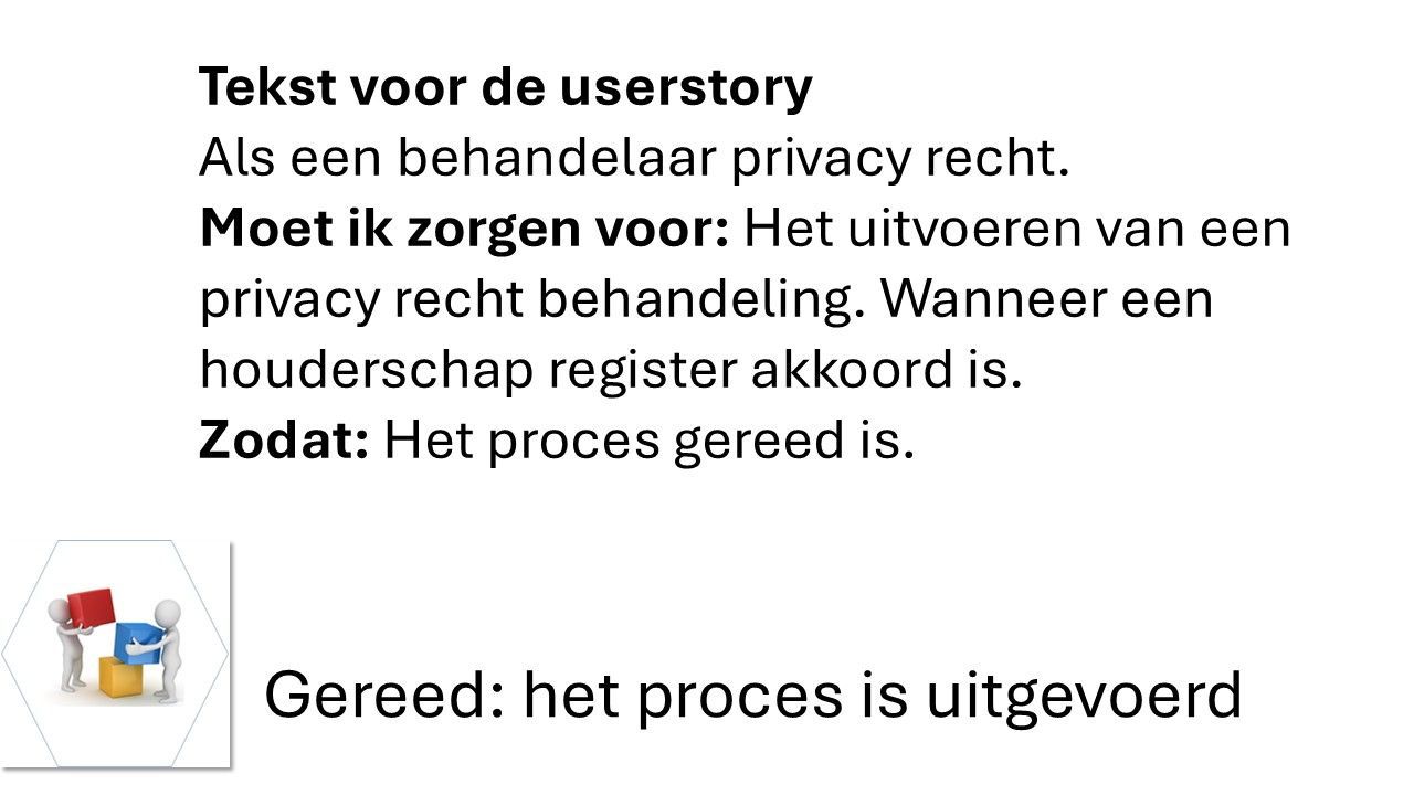Bekijk het voorbeeld: userstory uitvoeren privacy recht behandeling