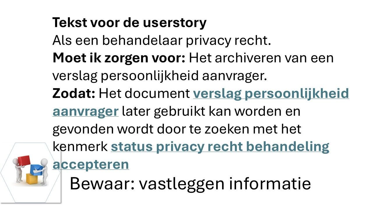 Bekijk het voorbeeld: userstory archiveren verslag persoonlijkheid aanvrager